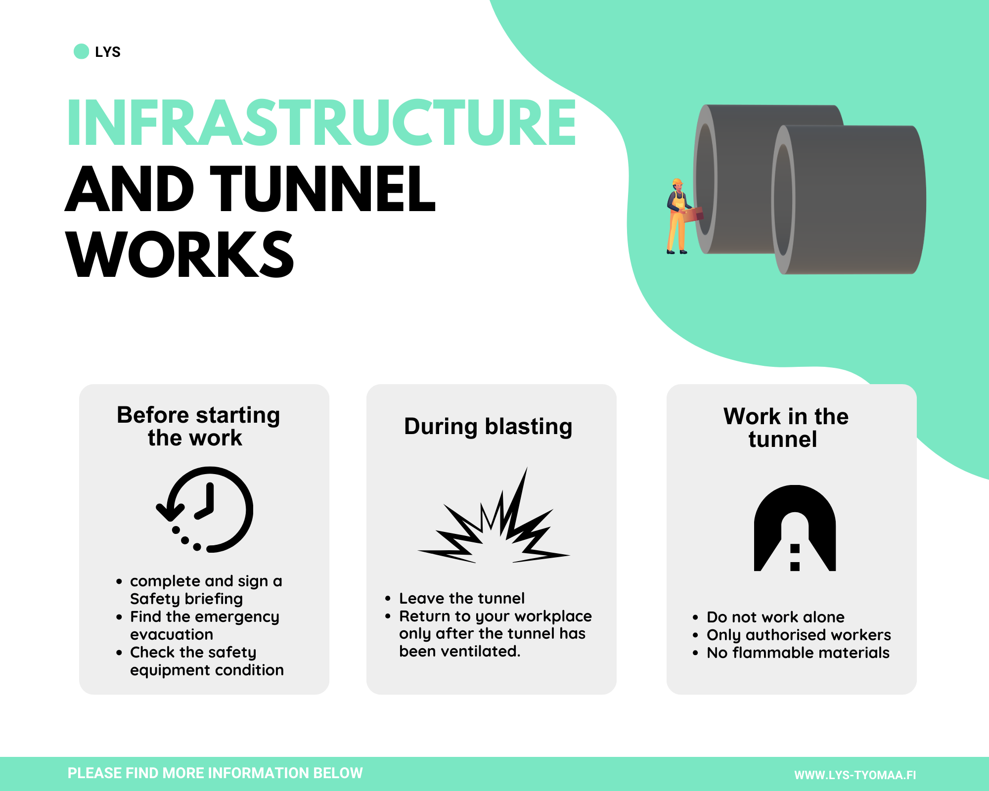 - Tunnelissa saavat työskennellä vain henkilöt, jotka ovat saaneet sinne kulkuluvan ja jotka ovat suorittaneet erillisen tunneliperehdytyksen.
