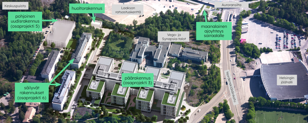 Laakson yhteissairaala -hanke jakautuu useisiin osaprojekteihin: