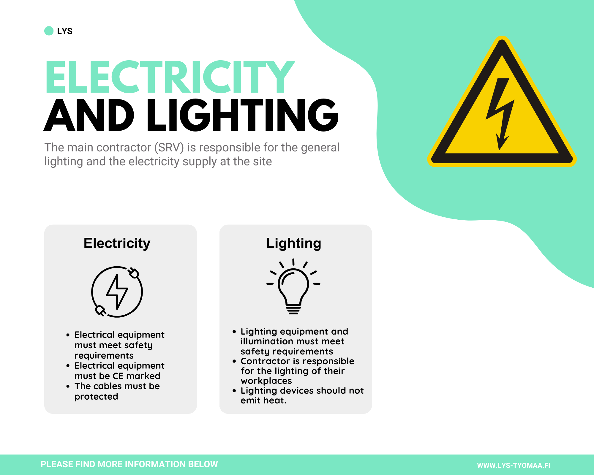 - Päätoteuttaja (SRV) huolehtii työmaan ja sen kulkuteiden yleisvalaistuksesta.