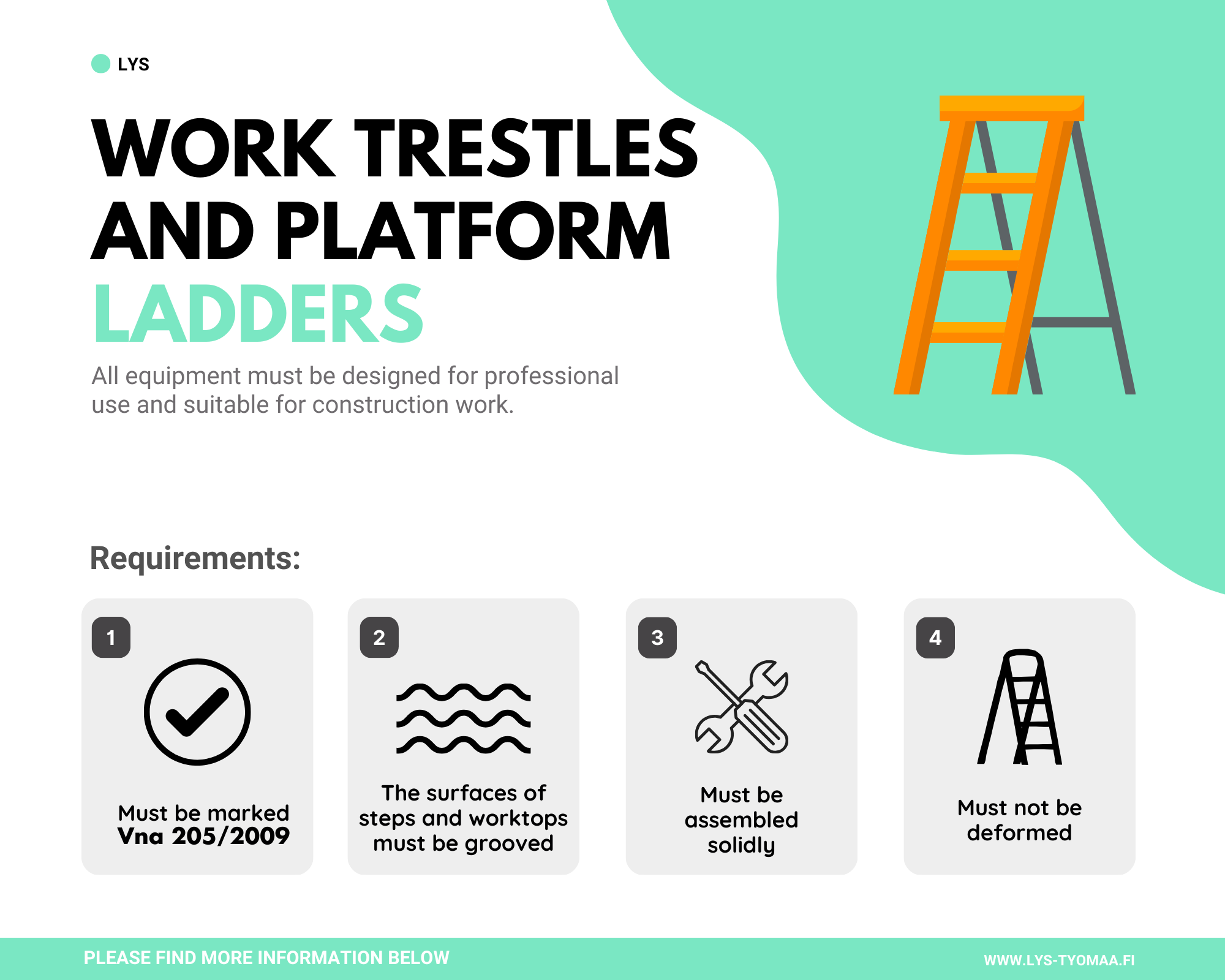 - alusta on painumaton ja tasainen, jotta tikkaat eivät kaadu.